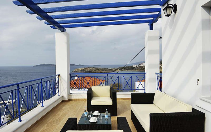 Η Bebas Villa 1 (με εμβαδόν 130 τμ.), κτισμένη ψηλά με την πανοραμική και εντυπωσιακή θέα του Αιγαίου, περιλαμβάνει δύο μεγάλα υπνοδωμάτια με διπλά κρεβάτια, δύο μεγάλα μπάνια, πλήρη μεγάλη κουζίνα, τραπεζαρία, σαλόνι, μεγάλες βεράντες περιμετρικά.